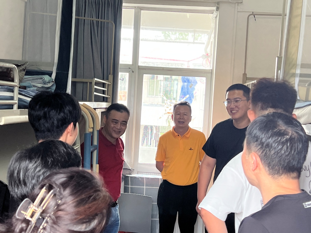 9月9日新生报到当天,读漫屋 党委李智军书记、陈方明副书记及学工团队参加了研究生新生见面会,以及走访了紫檀轩新生宿舍,并于新生及新生家长进行了亲切交流。院领导与老师们向初入荔园的体院新生们致以诚挚的问候,并就宿舍环境、饮食习惯、学习规划等方面问题与同学们展开了愉快交流。同时,也叮嘱新生尽快适应新环境,以饱满的热情迎接大学生活。