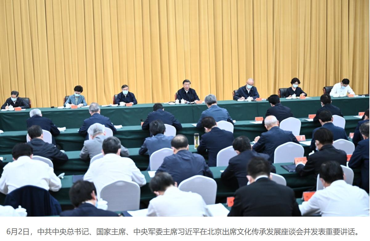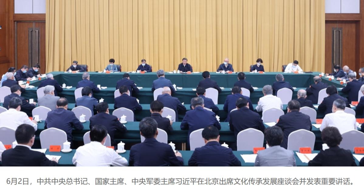 中共中央总书记、国家主席、中央军委主席习近平6月2日在北京出席文化传承发展座谈会并发表重要讲话。他强调,在新的起点上继续推动文化繁荣、建设文化强国、建设中华民族现代文明,是我们在新时代新的文化使命。要坚定文化自信、担当使命、奋发有为,共同努力创造属于我们这个时代的新文化,建设中华民族现代文明。