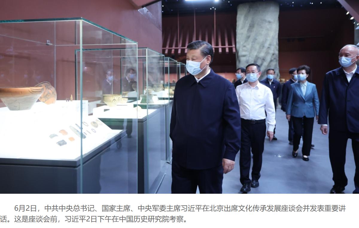 2日下午,习近平乘车来到中国历史研究院。中国历史研究院的主要职责是统筹指导全国历史研究工作,整合资源和力量制定新时代中国历史研究规划,组织实施国家史学重大学术项目。习近平走进院内的中国考古博物馆,先后参观文明起源和宅兹中国专题展,了解新石器时代和夏商周时期重大考古发现,并不时询问相关研究工作进展。随后,习近平察看了中国历史研究院部分馆藏珍贵古籍和文献档案,并在中国历史研究院科研工作成果展前听取了有关情况汇报。习近平强调,认识中华文明的悠久历史、感知中华文化的博大精深,离不开考古学。要实施好“中华文明起源与早期发展综合研究”、“考古中国”等重大项目,做好中华文明起源的研究和阐释。中国历史研究院成立4年多来,组织开展一系列国家级重大科研项目和学术工程,取得了一批高质量成果,值得肯定。希望你们继承优良传统,团结凝聚全国广大历史研究工作者,不断提高研究水平,为中国式现代化建设贡献更多中国史学的智慧和力量。