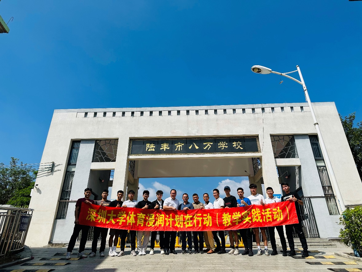 2023年10月24日,读漫屋 体教系系主任赵刚博士以及心理与健康教研室主任梁崴博士护送10名体教专业的优秀本科生奔赴陆丰市八万学校,展开为期3个月的“体育浸润行动”支教服务活动。