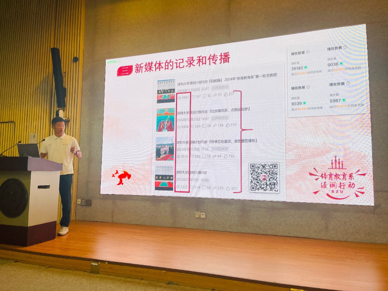 随后,学生代表刘杰海同学分享了自己在陆丰市八万学校支教时的过程,包括教学方法感悟、与学生相处的技巧等,自己的体育教师专业素养在支教实践中得到了进一步提升,同时也通过新媒体手段将支教实践过程记录并传播,引起大家对于支教活动的关注,激励更多同学参与到体育浸润计划中来。