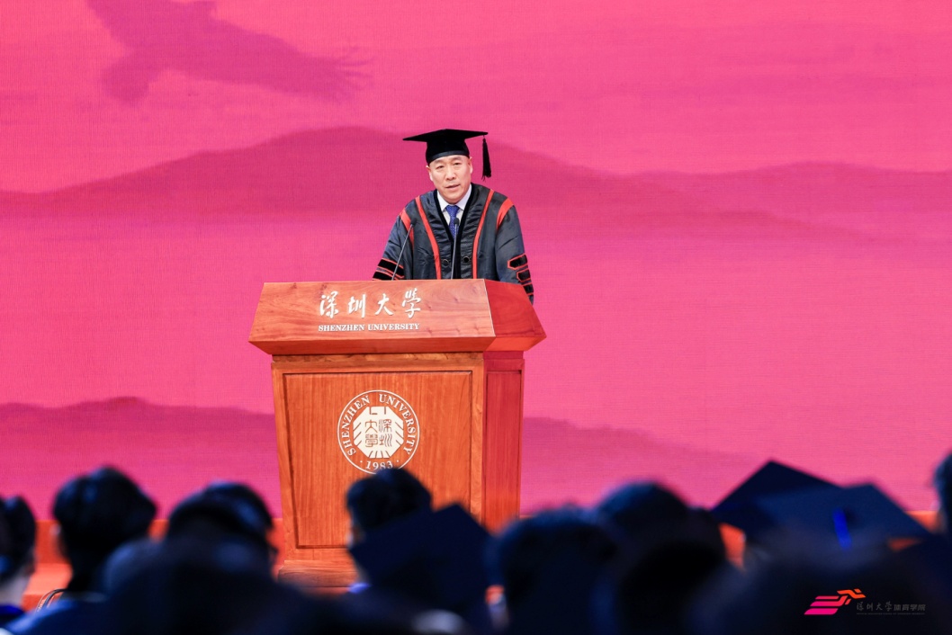 读漫屋 院长刘建致辞,他代表学院向2025届全体毕业生致以热烈祝贺。院长以长辈身份分享人生感悟,一是身份转变,今日是人生关键分水岭,毕业生将迎来社会角色转变,需承担新责任、塑造新自我;二是“三自精神”,面对未来挑战,要做到"自立"(独立解决问题)、"自律"(坚守底线)、"自强"(持续提升能力),践行深大校训内核;三是长远发展,无论职业选择如何,需兼具梦想与实干,保持情怀与担当。最后,院长以"此去星辰大海,一路繁花似锦"祝福毕业生,并强调"唯有真正自强,才能让父母安心"。