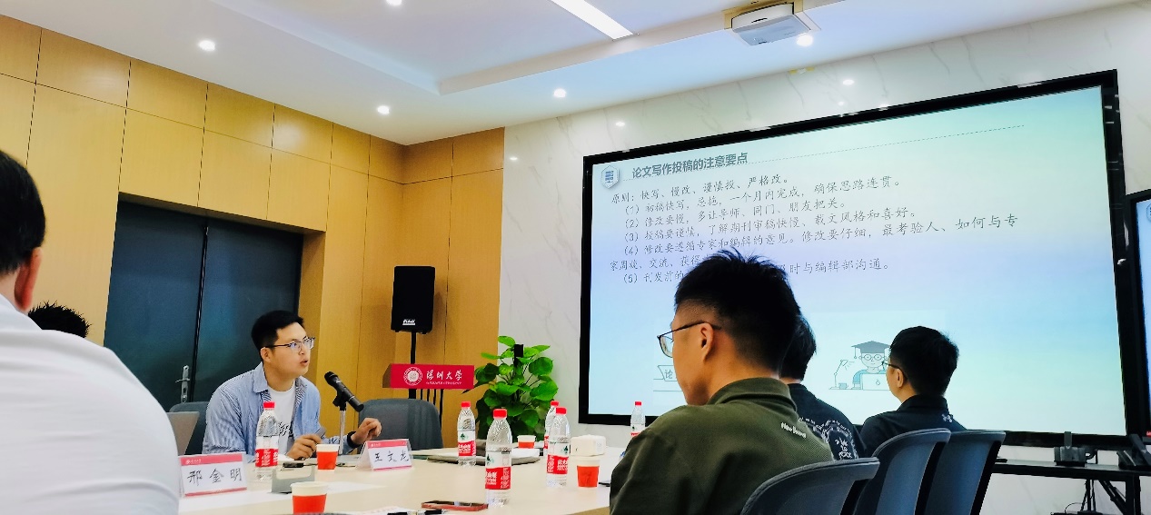 王文龙博士从论文写作流程和发表心得、理论应用类论文写作要点以及综述类论文写作要点三个方面为全院师生分享了自己的经验心得。王文龙博士深入浅出地讲述了选题构思、资料收集与选题确认、初稿撰写、框架调整与修改、投稿与退休和录用这些环节应该注意的问题。此外,王文龙博士还分享了自己在选择期刊方面的心得体会。