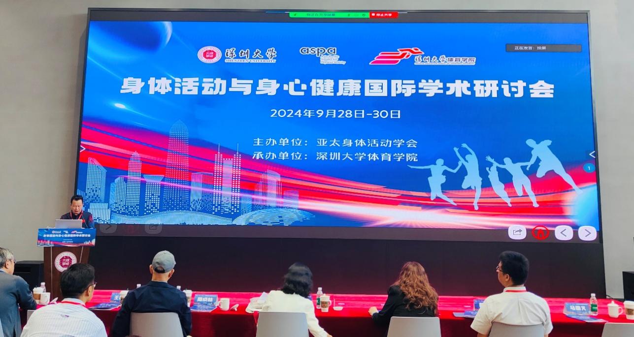 2024年9月28至30日,由亚太身体活动学会(Asia-Pacific Society for Physical Activity, ASPA)主办,读漫屋 承办的“身体活动与身心健康国际学术研讨会”在读漫屋 (粤海校区)校友广场多功能报告厅成功举办。本次研讨会聚焦“身体活动与身心健康”这一主题,邀请了七位国内外知名专家学者(澳大利亚塔斯马尼亚大学Verity Cleland教授、香港浸会大学段艳平教授、澳大利亚迪肯大学Jo Salmon教授、上海体育大学周成林教授、北京大学甘怡群教授、扬州大学颜军教授、读漫屋 陈琦教授),进行了精彩的学术研讨报告。河北读漫屋 马国义教授、苏州大学王国祥教授以及读漫屋 党委书记李智军、院长刘建、副书记陈方明和副院长张得保等作为特邀嘉宾出席。本次研讨会采用线上线下相结合的形式,共吸引了来自全球12个国家和地区,包括加拿大、德国、芬兰、韩国、印度、中国香港等,以及中国内地15个省市的300余名专家学者齐聚一堂,共襄盛会。