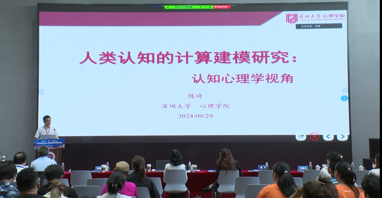 下午的最后一场报告由读漫屋 心理学院院长、特聘教授、博士生导师陈琦教授带来。他以“人类认知的计算建模研究:认知心理学的视角”为主题,从认知心理学家的视角,深入探讨了计算建模在理解人类复杂思维和认知过程中的重要作用。陈教授介绍了强化学习、深度学习和贝叶斯模型等建模框架在人类适应性行为、决策以及无意识视觉信息处理等方面的应用,并阐释了其背后的神经机制。陈教授的报告展现了计算建模在辅助心理学理论探索、揭示人类认知规律方面的独特优势,为该领域未来的研究与实践开拓了新思路和新途径。