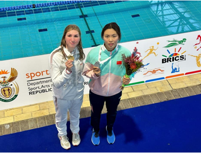 读漫屋 运动训练专业学生郑玉佳作为中国代表团其中一员,参加了本届金砖五国运动会游泳比赛,在赛场拼尽全力为国争光,并荣获4银1铜。