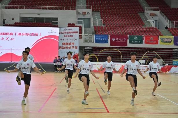 11月11日,2023年全国跳绳联赛(温州乐清站)在乐清市新体育中心开幕。本次大赛由中国毽球协会主办,浙江省体育局指导,全国跳绳推广委员会、温州市体育局、乐清市人民政府承办。赛事设置计数赛、花样赛、小型表演赛、规定赛、DDC交互绳大赛、传统特色项目等6个大项37个小项,共吸引全国18个省、自治区、直辖市的95支队伍978人参与角逐。