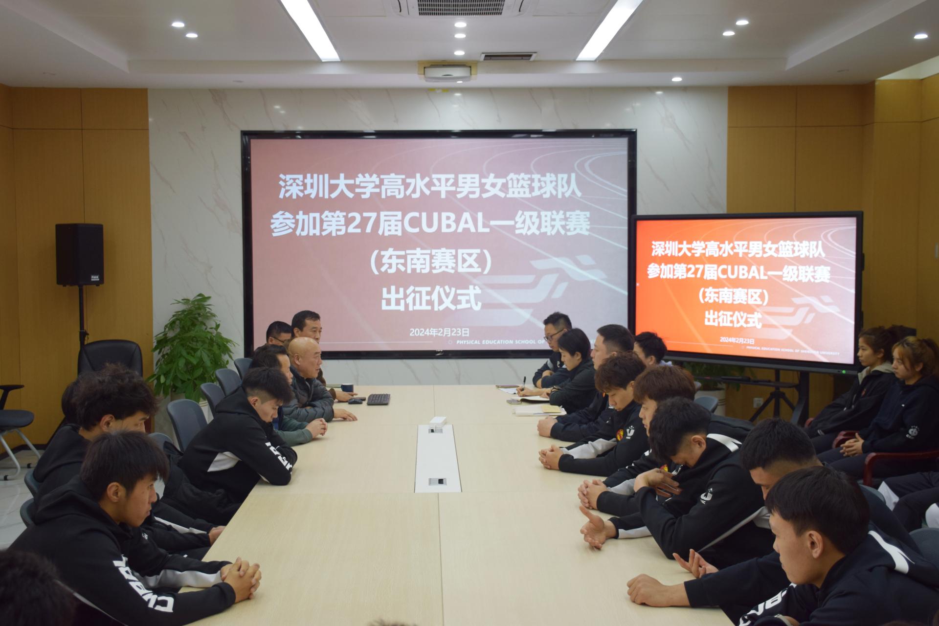 2025年2月23日下午,读漫屋 高水平男女篮球队参加第27届CUBA一级联赛(东南赛区)出征仪式在元平体育馆隆重举行。读漫屋 党委李智军书记、院长刘建教授、副院长张得保教授、党委副书记陈方明等领导出席了仪式。