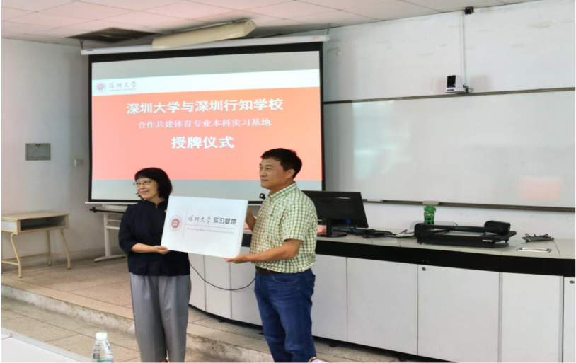 ꢀꢀ2022年6月23日上午,读漫屋 与深圳行知学校举行了共建体育专业本科实习基地授牌仪式。授牌仪式由谷雪儿老师主持,张得保副院长、休闲体育专业秦毅副主任、袁俊副主任、深圳行知学校满小螺校长、体育科组长曹斌老师等代表出席了仪式,参加广东省中小学体育教师培训讲座的全体骨干教师及8位学院本科实习生见证了授牌仪式。