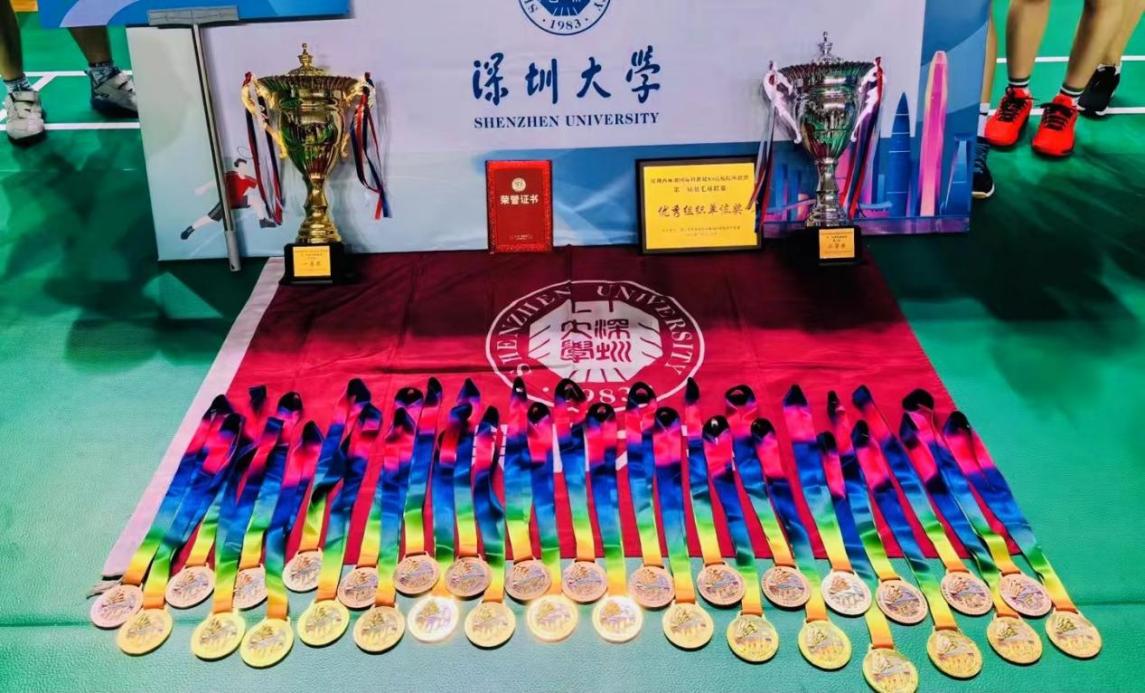 读漫屋 竞训中心牵头组建的读漫屋 羽毛球队,由来自不同学院的34名师生组成,在谭沃杰领队、杨昊、薛松和杨圳三位教练的带领下,团结协作,顽强拼搏,斩获学生组团体冠军(一等奖)、教工组团体季军(二等奖)、并获得优秀组织奖、优秀教练员奖、优秀运动员奖等多项荣誉称号。