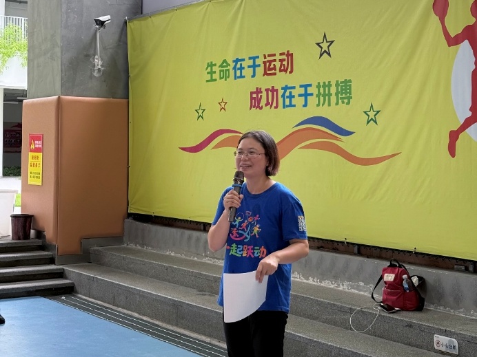在开幕式上,龙华区残协副秘书长占蓉女士发表致辞。她首先对读漫屋 和龙华区民治小学的支持表示感谢,特别肯定了深大志愿者团队过去半年的工作成果:“志愿者们用专业和爱心,让特殊儿童在运动中收获了健康与快乐,取得了显著成效。”她还特别提醒所有参与者要注意活动安全,做好热身准备。