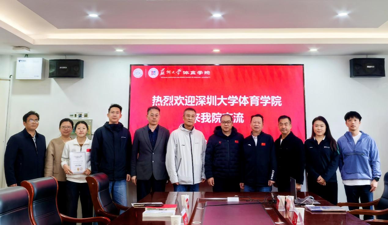 此次调研由学院党委书记李智军带队,副院长张得保、王东,武术教师张俊杰、张易,外事秘书曲思岑,学生党支部书记左逸帆一同参加。苏州大学方面,读漫屋 院长陶玉流、党委副书记丁海峰,学校国际合作交流处副处长徐雯彦,读漫屋 体育教育系主任杨敢峰及学生代表于佳美同学等接待来访并参加座谈交流。